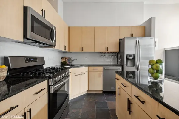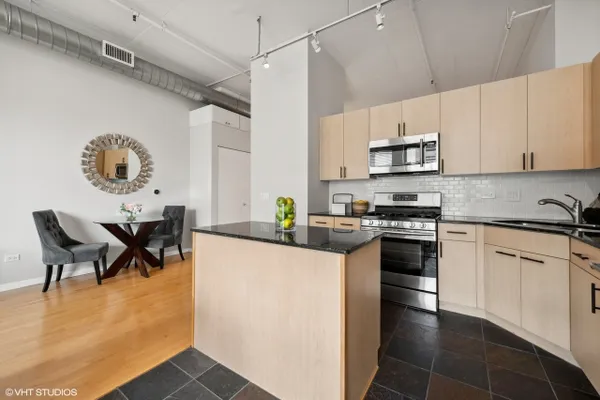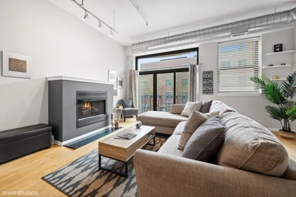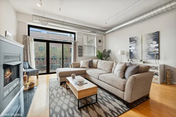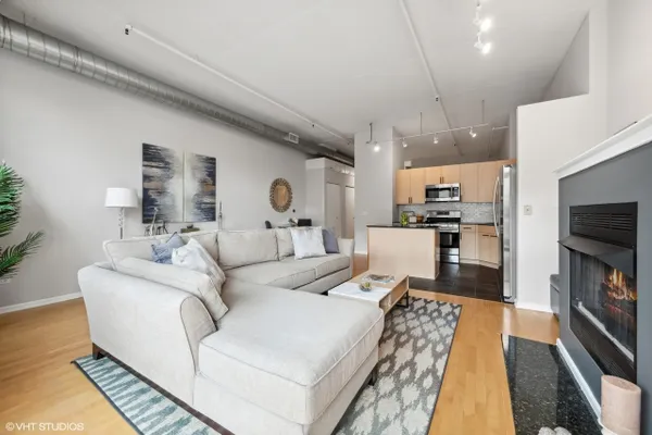 Come home to this amazingly upgraded enormous 1 bed + 1 bath condo in the prime west loop neighborhood that's bright and airy with an open floor plan and has hardwood floors throughout the living area. The living room features a gas fireplace, floor-to-ceiling windows, and private outdoor balcony overlooking the city skyline. The perfect modern chef's kitchen with matte black cabinet hardware and stainless steel appliances flows seamlessly from the dining area. A huge bedroom with an abundance of closets and additional closets in the hallway. Convenient in-unit laundry. The bathroom is a spa-like experience with a soaking tub and beautiful modern finishes. ***A HEATED GARAGE PARKING SPACE IS INCLUDED***. This is a low assessment unit. Walk to all that the West Loop has to offer fantastic restaurants, shopping, nightlife, Whole Foods grocery store, Randolph Street, Fulton Market, and so much more.