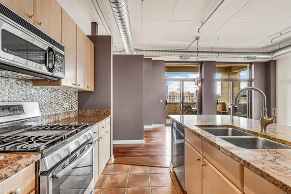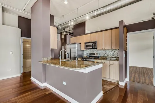 Take a look at this beautiful lofted condo located in the trendy West Loop neighborhood, boasting two spacious bedrooms and two bathrooms. As you enter the unit, you'll be amazed by an open-concept living area with soaring ceilings and large windows that flood the space with natural light. The living area seamlessly flows into an open concept kitchen, complete with stainless steel appliances, granite countertops, and ample storage space. Step out onto the expansive terrace (over 300 sq. ft.) and take in views of the city skyline while enjoying a cup of coffee or grilling up dinner with friends. The primary bedroom features an on-suite bathroom with dual vanity, and a huge size walking closet. Unit has newer furnace, fridge, dishwasher and W/D . 1 garage parking is also included in the price. This unit offers the best of city living, with easy access to restaurants, bars, and shopping in the vibrant West Loop neighborhood. With its big outdoor space and abundance of natural light, this is the perfect place to call home. A preferred lender offers a reduced interest rate for this listing.
