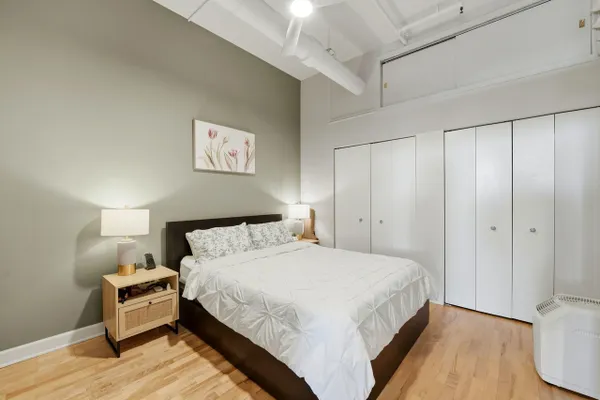 Welcome to the heart of the West Loop! Incredible value for this penthouse living that radiates warmth, sunlight, and comfort the moment you walk in. Situated on the top floor with unobstructed south-facing views, natural sunlight pours through the windows of this 2 Bed, 1 Bath all day long, filling the extra-wide living and dining space with a beautiful glow. Rich oak hardwood floors run throughout, creating a seamless and inviting feel. The open-concept kitchen has been tastefully renovated and flows effortlessly into the living area; perfect for both quiet evenings at home and easy entertaining. The updated bathroom adds a fresh, modern touch, and the entire home has been freshly painted, making it truly move-in ready. The spacious primary bedroom boasts excellent storage with two closets plus two freestanding armoires (included). The second bedroom easily accommodates a queen-sized bed and features a separate alcove ideal for a desk or home office setup. In-unit laundry adds everyday convenience. Private balcony, In-unit laundry and a heated, attached garage parking space complete this thoughtfully designed home. 1301 W Madison is a well-run, investor-friendly building with healthy reserves and some of the lowest assessments for 2BR/1BA units in the West Loop. Residents enjoy exclusive access to the incredible private park just steps away. Located in highly acclaimed Skinner West Elementary and just two blocks from Randolph Street's famed Restaurant Row, with easy access to the CTA Blue Line, I-94/290, and walkable to the Loop and Fulton Market - this location truly cannot be beat.
